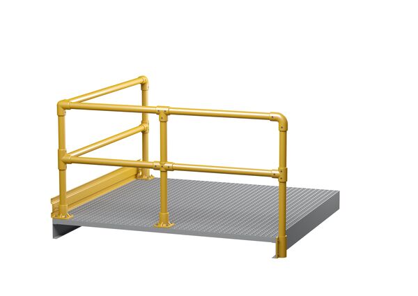 Balustrady składające się z poręczy, poprzeczki, słupków oraz krawężnika, powinny być zastosowane w miejscach, gdzie wysokość podestu przekracza 500 mm, oraz tam, gdzie odstęp pomiędzy podestem a maszyną lub ścianą jest większy niż 180 mm, jak również w sytuacji, gdy konstrukcja maszyny nie zapewnia bezpieczeństwa równoważnego do ochrony